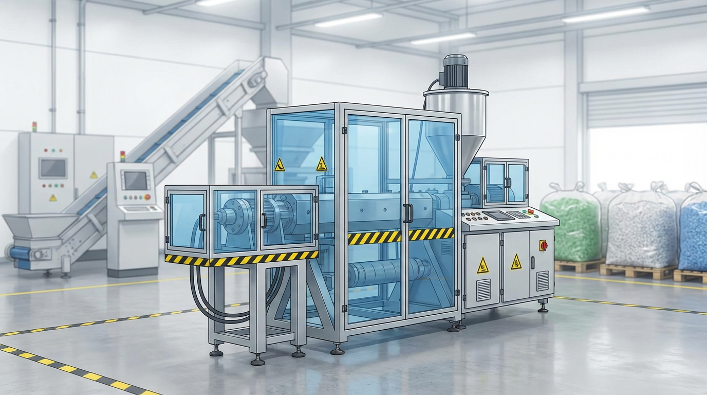 In actual operations, we have observed that mechanical entanglement incidents most frequently occur during non-routine tasks — clearing jams, adjusting settings, or cleaning — rather than during normal steady-state production. This is why LOTO procedures and specific task-based risk assessments are so critical. A plastic granulator or pelletizer connected downstream adds additional mechanical hazard zones that must be included in the overall safety assessment.