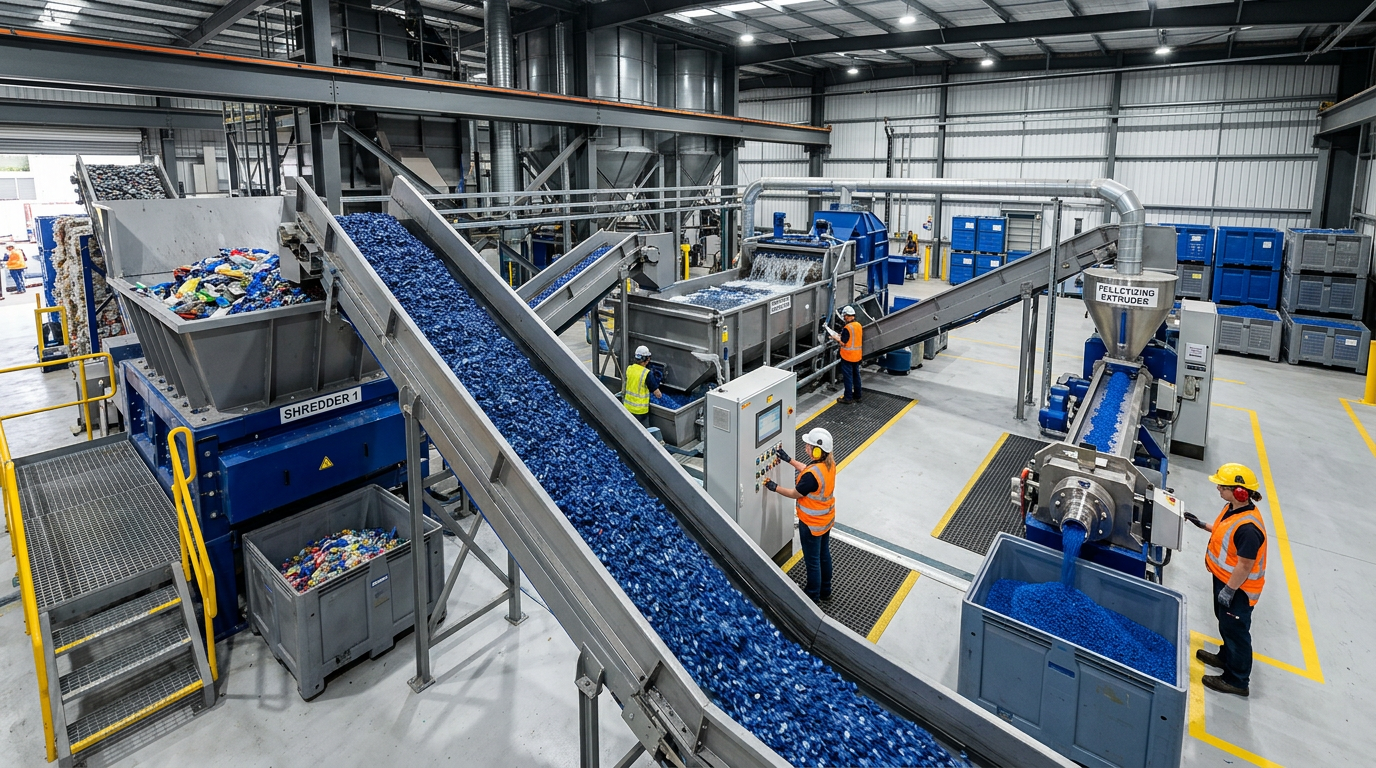 Direct answer: Match your line to feedstock contamination level, polymer type, and target pellet IV. Rigid PET bottles need a wash line + crystallizer + vented twin-screw extruder; LDPE film requires a shredder + friction washer + single-screw with melt filtration ≤80 µm; post-industrial scrap runs cleanly on a single-stage pelletizer; mixed bales demand NIR sorting before any extruder touches them.